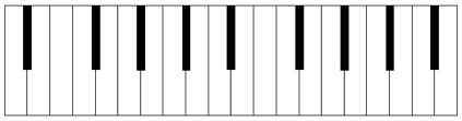 Below is a diagram of the same keyboard, to make it more clear how it was made. G# was painted white to become a Bohlen-Pierce E. The grey shaded keys – H, J, A, B – were shaved thinner in a symmetrical manner so that the black keys – H#, A# – are centered. The pattern – C, C#, D, E, F, F#, G – is the same keys and same widths as a normal 12 tone pattern of F, F#, G, G#, A, A#, B.